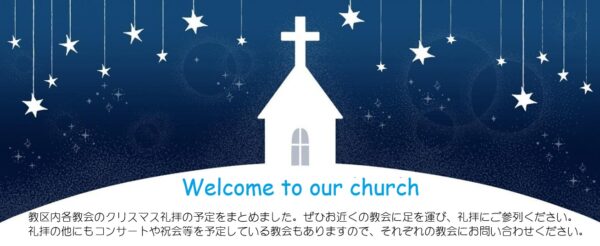 教区内各教会のクリスマス礼拝の予定をまとめました。ぜひお近くの教会に足を運び、礼拝にご参列ください。礼拝の他にもコンサートや祝会等を予定している教会もありま...